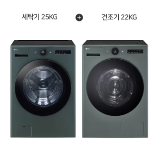 [LG] 트롬 오브제컬렉션 세탁기 25kg + 건조기 22kg 네이처그린 [FX25GSGR+RD22GSG]