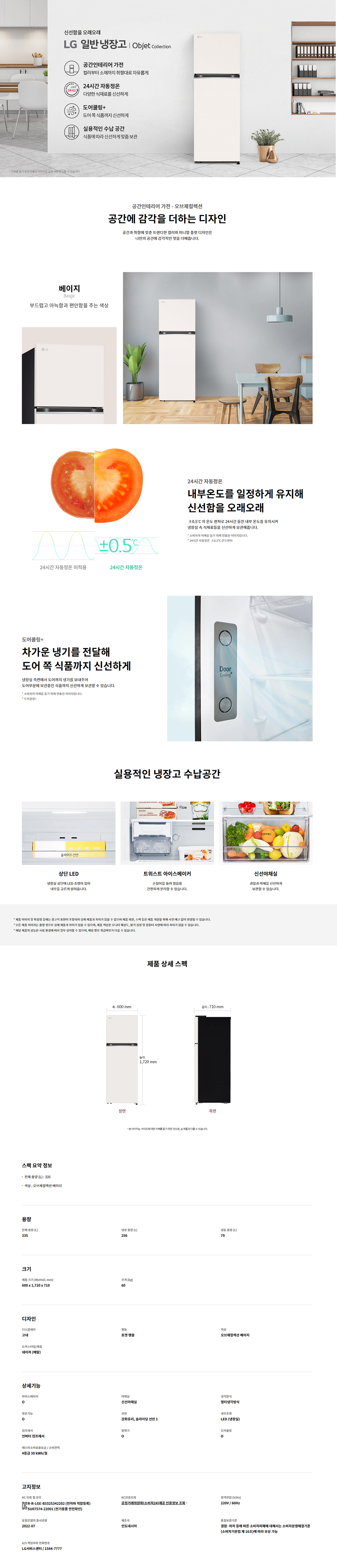 D332MBE34 스마트렌탈 [LG] 일반냉장고 오브제컬렉션 335L 베이지 제품분류 냉장고 용량(총량) 300L이상 기능 2도어 AS기간 1년 최저 렌탈가 월 18,500 (렌탈가) 제휴카드 할인가 월 (렌탈가) 3년 4년 5년 할인 제휴카드 보기 렌탈신청 장바구니