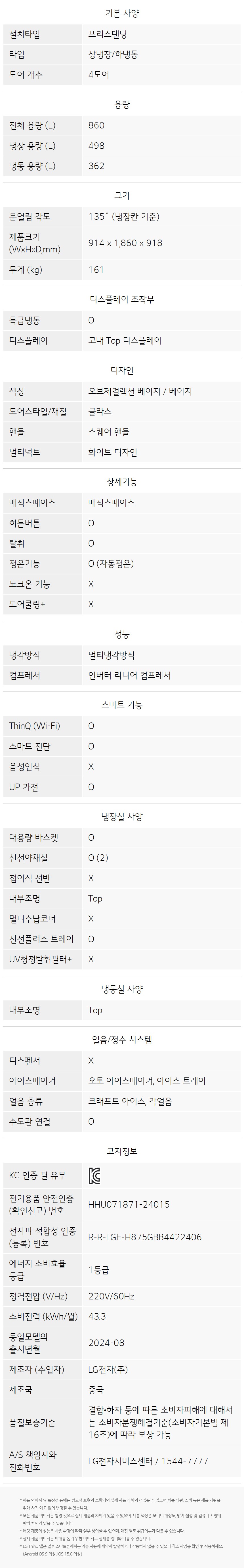 H875GBB141 LG전자구독 [LG] 디오스 오브제컬렉션 매직스페이스 냉장고 860L 베이지 제품분류 냉장고 용량(총량) 800L이상 기능 5도어 AS기간 렌탈기간내 최저 렌탈가 월 65,900 (렌탈가) 제휴카드 할인가 월 (렌탈가) 6년 할인 제휴카드 보기 렌탈신청 장바구니