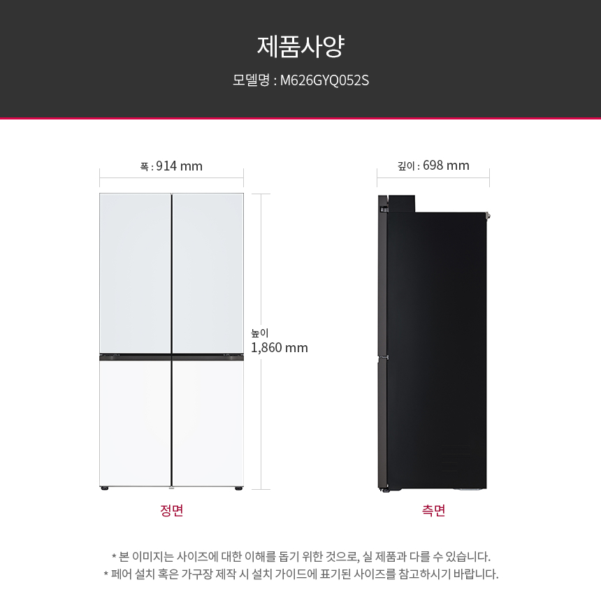 M626GYQ052S LG전자구독 [LG] 디오스 오브제컬렉션 냉장고 601L 크림스카이/에센스화이트 제품분류 냉장고 용량(총량) 600L이상 기능 4도어 AS기간 렌탈기간내 최저 렌탈가 월 79,900 (렌탈가) 제휴카드 할인가 월 (렌탈가) 3년 4년 5년 6년 할인 제휴카드 보기 렌탈신청 장바구니