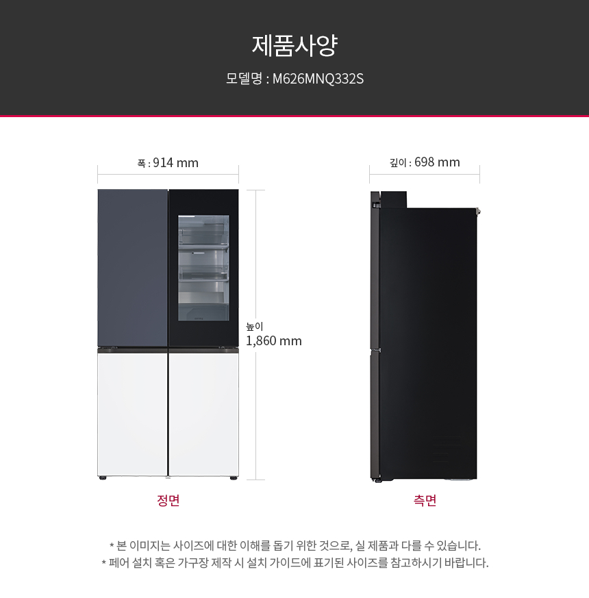 M626MNQ332S LG전자구독 [LG] 디오스 오브제컬렉션 노크온 냉장고 613L 네이비/에센스화이트 제품분류 냉장고 용량(총량) 600L이상 기능 4도어 AS기간 렌탈기간내 최저 렌탈가 월 68,900 (렌탈가) 제휴카드 할인가 월 (렌탈가) 3년 4년 5년 6년 할인 제휴카드 보기 렌탈신청 장바구니