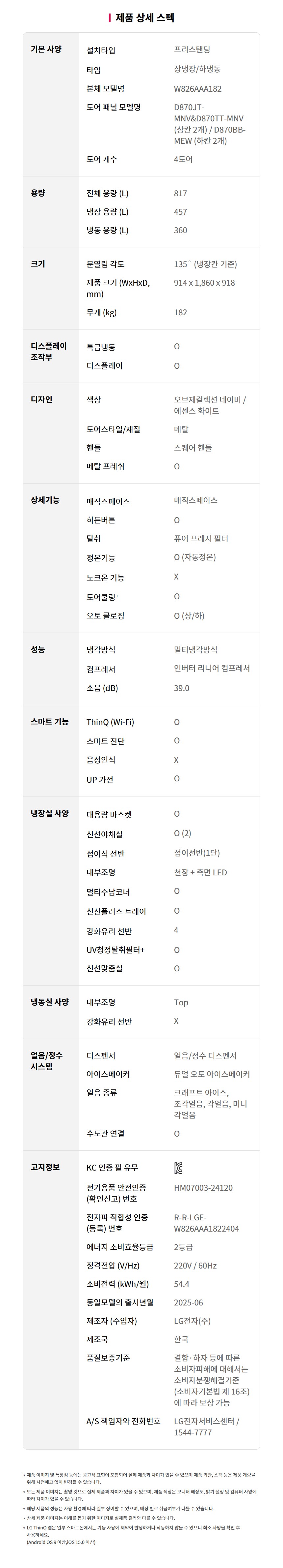 W826MNQ182S LG전자구독 [LG] 디오스 AI 오브제컬렉션 매직스페이스 얼음정수기냉장고 817L 네이비/에센스화이트 제품분류 냉장고 용량(총량) 800L이상 기능 얼음정수기 기능 5도어 AS기간 렌탈기간내 최저 렌탈가 월 111,900 (렌탈가) 제휴카드 할인가 월 (렌탈가) 3년 4년 5년 6년 라이트 서비스 프리미엄 서비스 할인 제휴카드 보기 렌탈신청 장바구니