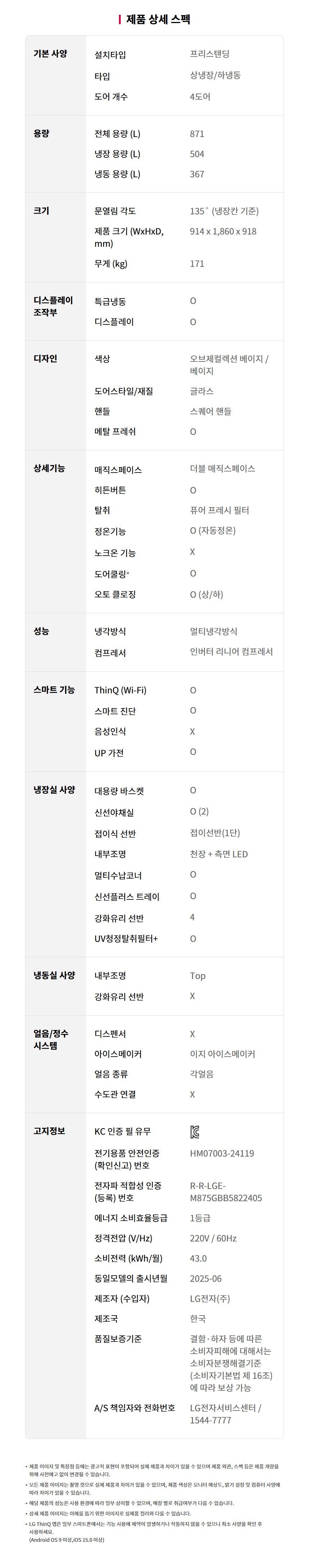 M876GBB231 LG전자구독 [LG] 디오스 AI 오브제컬렉션 더블매직스페이스 냉장고 871L 베이지 제품분류 냉장고 용량(총량) 800L이상 기능 6도어 AS기간 렌탈기간내 최저 렌탈가 월 82,900 (렌탈가) 제휴카드 할인가 월 (렌탈가) 3년 4년 5년 6년 라이트 서비스 프리미엄 서비스 할인 제휴카드 보기 렌탈신청 장바구니