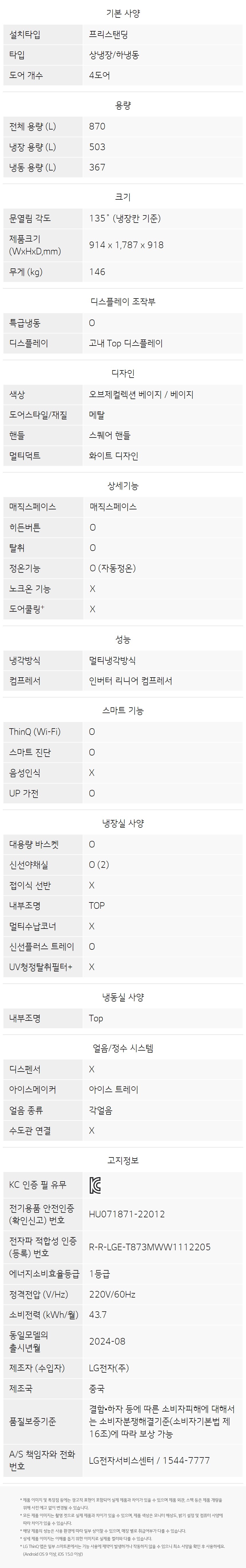 T875MEE111 LG전자구독 [LG] 디오스 오브제컬렉션 매직스페이스 냉장고 870L 베이지 제품분류 냉장고 용량(총량) 800L이상 기능 5도어 AS기간 렌탈기간내 최저 렌탈가 월 46,900 (렌탈가) 제휴카드 할인가 월 (렌탈가) 3년 4년 5년 6년 할인 제휴카드 보기 렌탈신청 장바구니