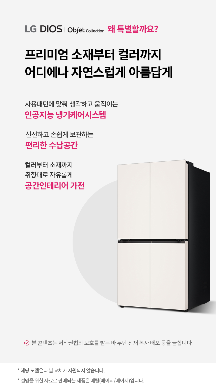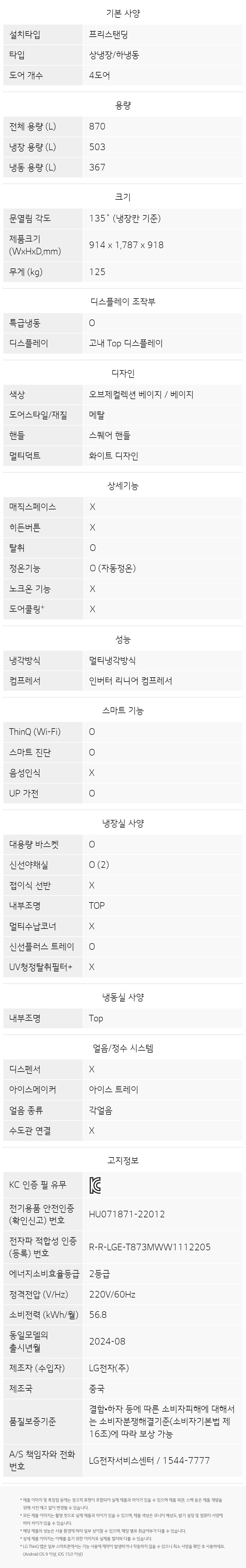 T875MEE012 LG전자구독 [LG] 디오스 오브제컬렉션 냉장고 870L 베이지 제품분류 냉장고 용량(총량) 800L이상 기능 4도어 AS기간 렌탈기간내 최저 렌탈가 월 40,900 (렌탈가) 제휴카드 할인가 월 (렌탈가) 3년 4년 5년 6년 할인 제휴카드 보기 렌탈신청 장바구니