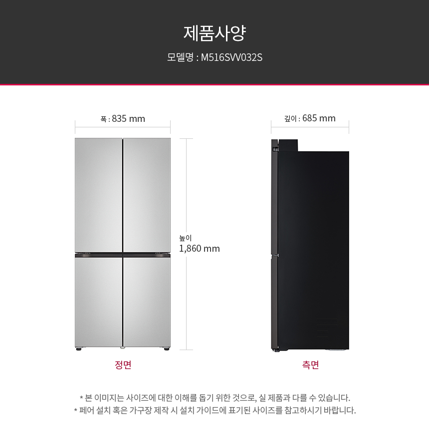 M516SVV032S LG전자구독 [LG] 디오스 오브제컬렉션 냉장고 504L 실버 제품분류 냉장고 용량(총량) 500L이상 기능 4도어 AS기간 렌탈기간내 최저 렌탈가 월 73,900 (렌탈가) 제휴카드 할인가 월 (렌탈가) 3년 4년 5년 6년 할인 제휴카드 보기 렌탈신청 장바구니