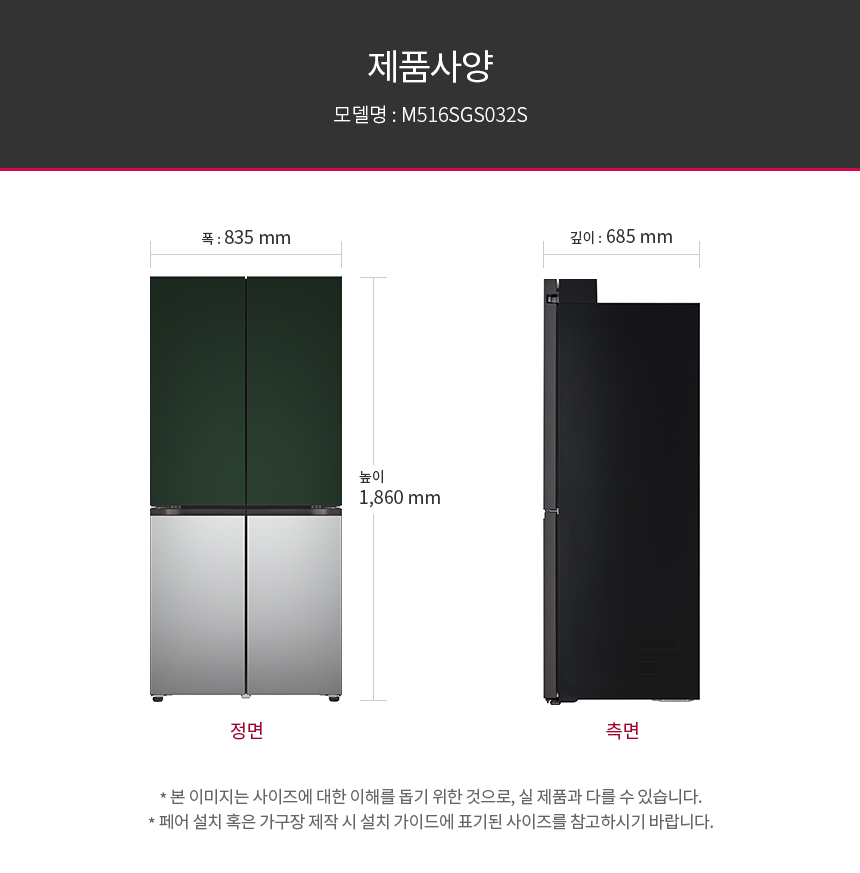 M516SGS032S LG전자구독 [LG] 디오스 오브제컬렉션 냉장고 504L 그린/실버 제품분류 냉장고 용량(총량) 500L이상 기능 4도어 AS기간 렌탈기간내 최저 렌탈가 월 73,900 (렌탈가) 제휴카드 할인가 월 (렌탈가) 3년 4년 5년 6년 할인 제휴카드 보기 렌탈신청 장바구니