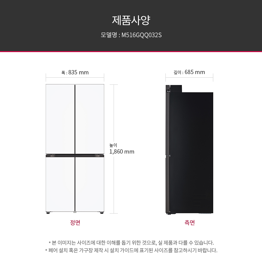 M516GQQ032S LG전자구독 [LG] 디오스 오브제컬렉션 냉장고 504L 에센스화이트 제품분류 냉장고 용량(총량) 500L이상 기능 4도어 AS기간 렌탈기간내 최저 렌탈가 월 66,900 (렌탈가) 제휴카드 할인가 월 (렌탈가) 3년 4년 5년 6년 할인 제휴카드 보기 렌탈신청 장바구니
