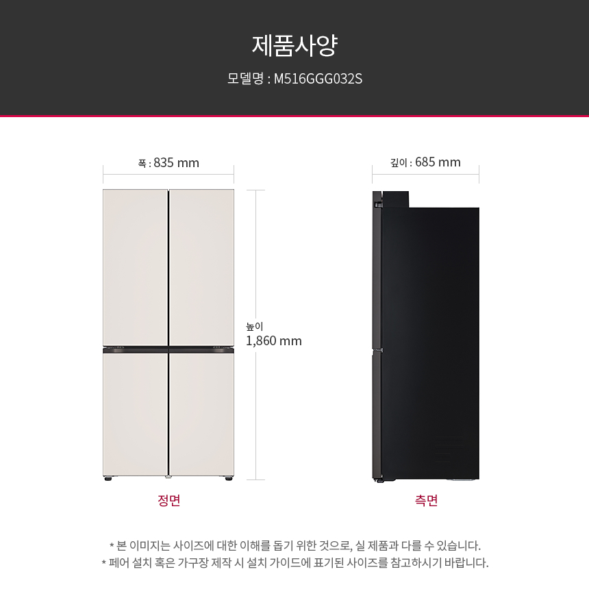 M516GGG032S LG전자구독 [LG] 디오스 오브제컬렉션 냉장고 504L 토프 제품분류 냉장고 용량(총량) 500L이상 기능 4도어 AS기간 렌탈기간내 최저 렌탈가 월 66,900 (렌탈가) 제휴카드 할인가 월 (렌탈가) 3년 4년 5년 6년 할인 제휴카드 보기 렌탈신청 장바구니