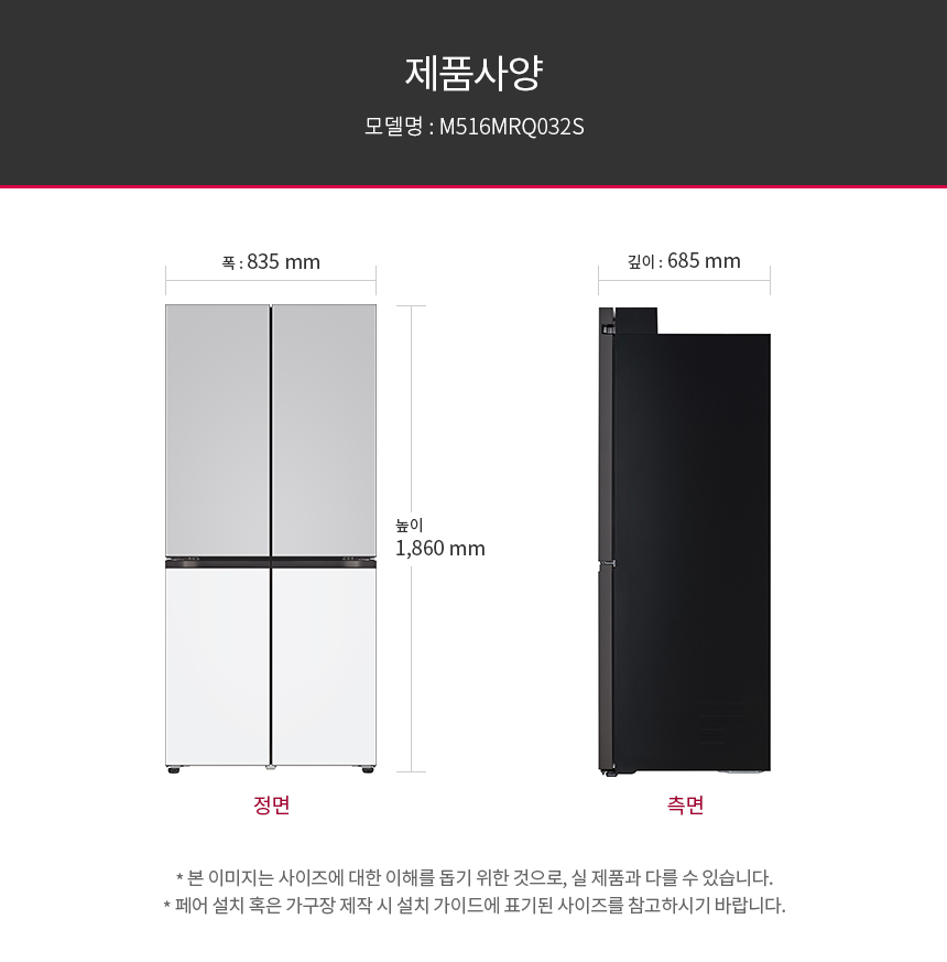 M516MRQ032S LG전자구독 [LG] 디오스 오브제컬렉션 냉장고 504L 크림그레이/에센스화이트 제품분류 냉장고 용량(총량) 500L이상 기능 4도어 AS기간 렌탈기간내 최저 렌탈가 월 59,900 (렌탈가) 제휴카드 할인가 월 (렌탈가) 3년 4년 5년 6년 할인 제휴카드 보기 렌탈신청 장바구니