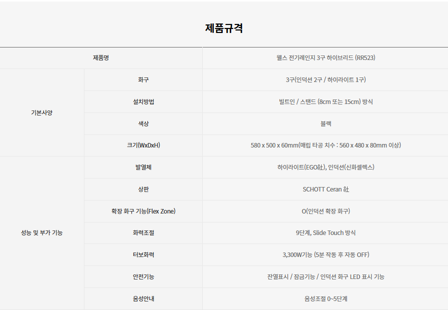 RR523 교원웰스 [웰스] 전기레인지 3구 하이브리드 제품분류 전기레인지 AS기간 렌탈기간내 최저 렌탈가 월 19,900 (렌탈가) 제휴카드 할인가 월 (렌탈가) 5년 할인 제휴카드 보기 렌탈신청 장바구니