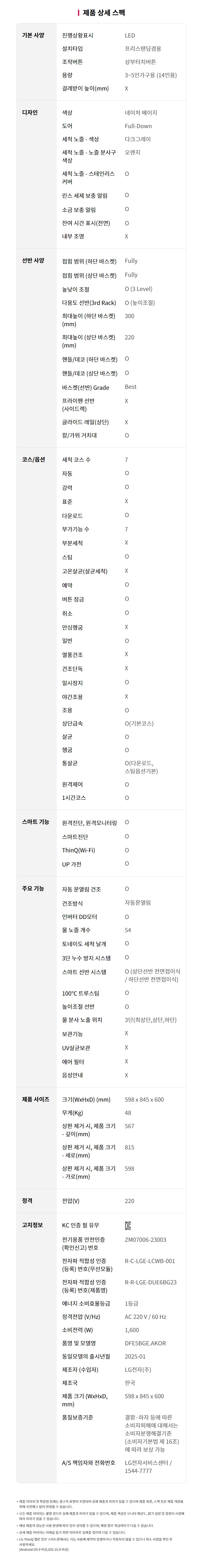 DFE5BGE LG전자구독 [LG] 디오스 오브제컬렉션 식기세척기 14인용 네이처베이지 제품분류 식기세척기 AS기간 렌탈기간내 최저 렌탈가 월 35,500 (렌탈가) 제휴카드 할인가 월 (렌탈가) 3년 4년 5년 6년 방문관리/6개월 방문관리/12개월 할인 제휴카드 보기 렌탈신청 장바구니