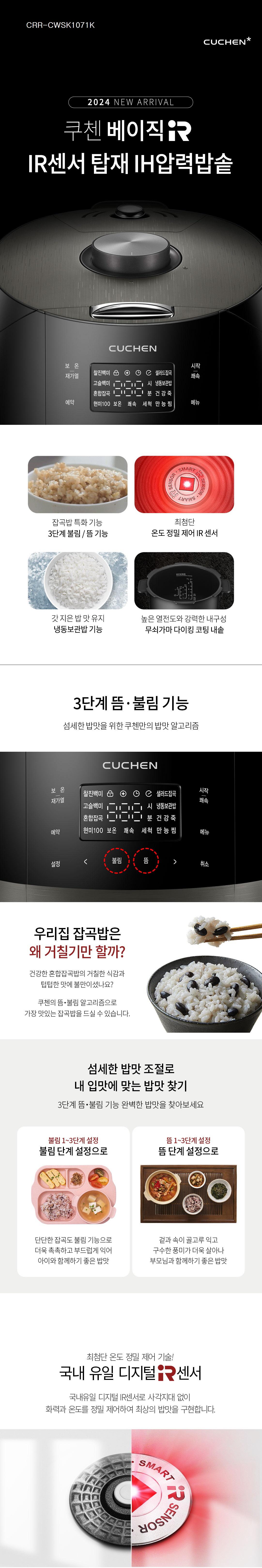 CRR-CWSK1071K 스마트렌탈 [쿠첸] IR센서 IH 압력밥솥 10인용 제품분류 전기밥솥 AS기간 1년 최저 렌탈가 월 12,900 (렌탈가) 제휴카드 할인가 월 (렌탈가) 3년 4년 5년 할인 제휴카드 보기 렌탈신청 장바구니