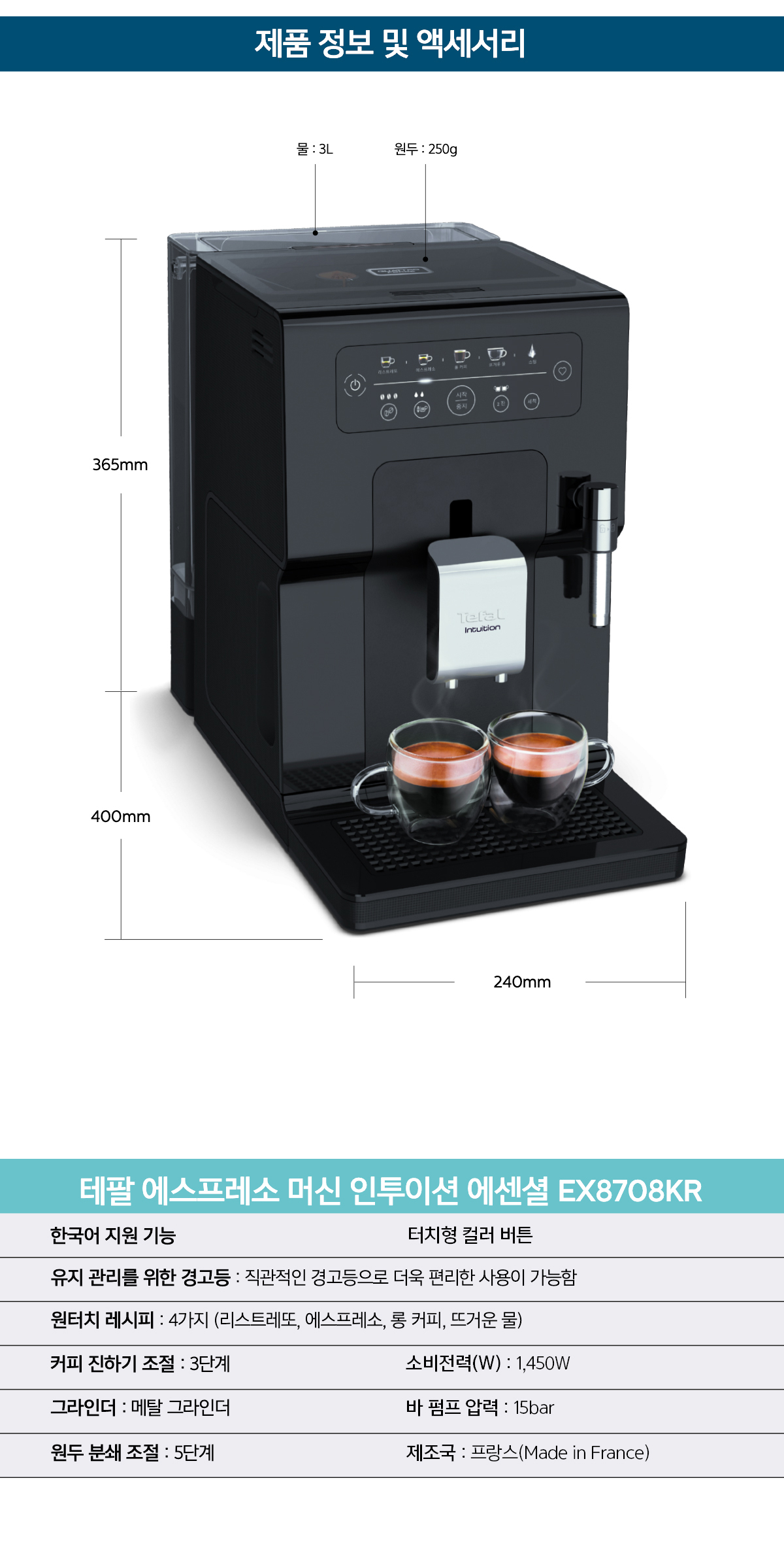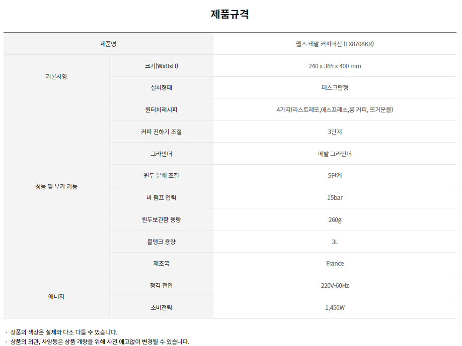 EX8708KR 교원웰스 [테팔] 전자동 에스프레소 머신 제품분류 커피머신 AS기간 렌탈기간내 최저 렌탈가 월 25,900 (렌탈가) 제휴카드 할인가 월 (렌탈가) 5년 셀프관리 방문관리 할인 제휴카드 보기 렌탈신청 장바구니