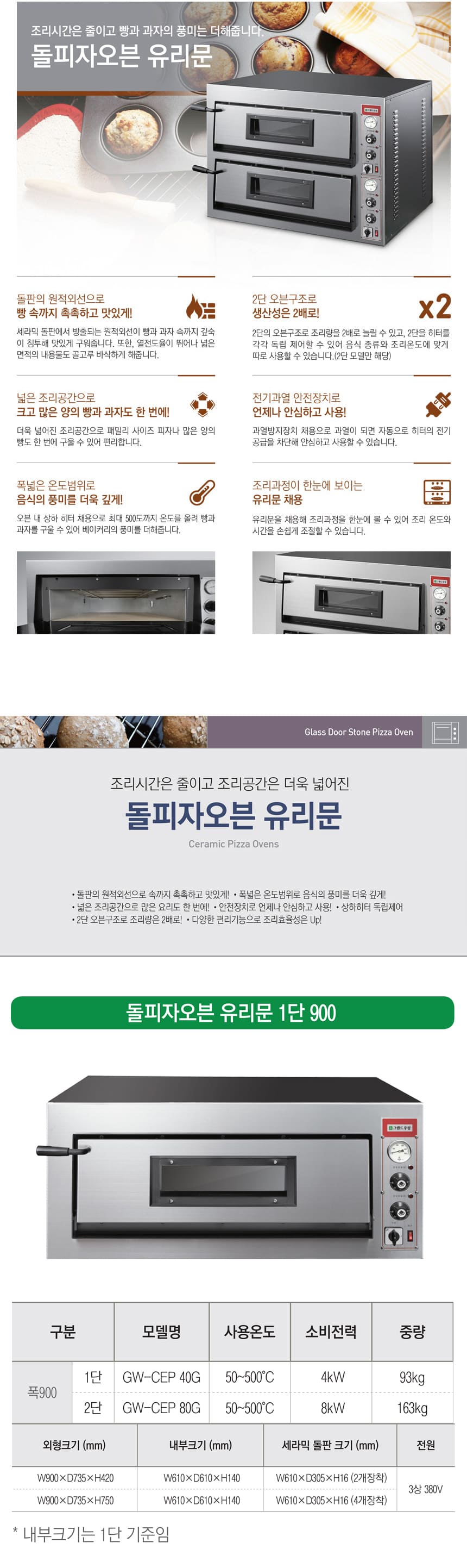 [그랜드우성] 업소용 돌피자오븐 유리문 1단 900