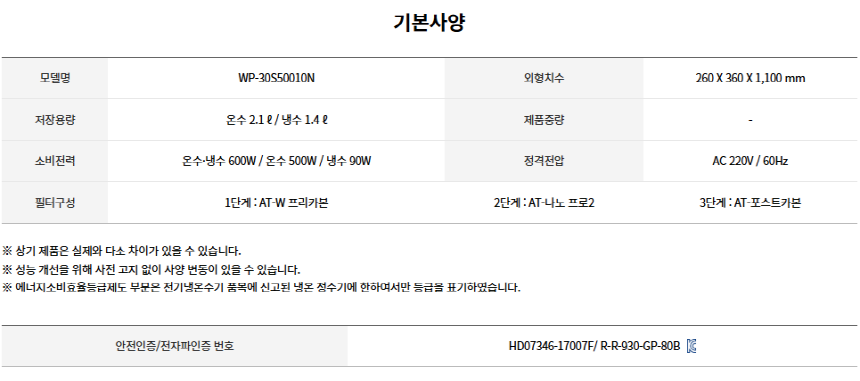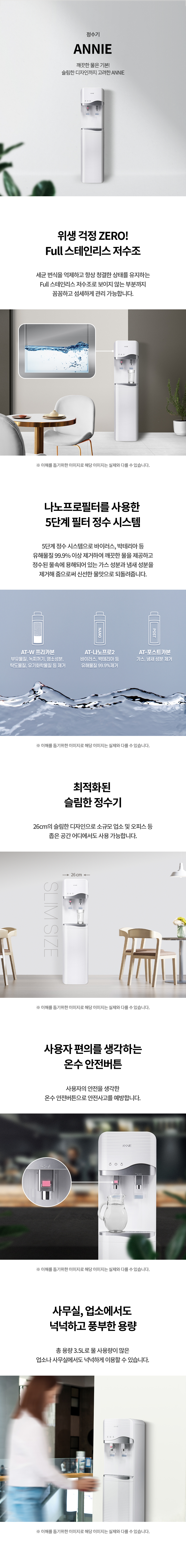 WP-30S50010N 청호나이스 [청호나이스] 냉온정수기 ANNIE 제품분류 정수기 정수방식 탱크형 기능 냉온전용 AS기간 렌탈기간내 최저 렌탈가 월 19,900 (렌탈가) 제휴카드 할인가 월 (렌탈가) 3년 5년 방문관리/4개월 제품색상 선택 화이트 + 0원 할인 제휴카드 보기 렌탈신청 장바구니