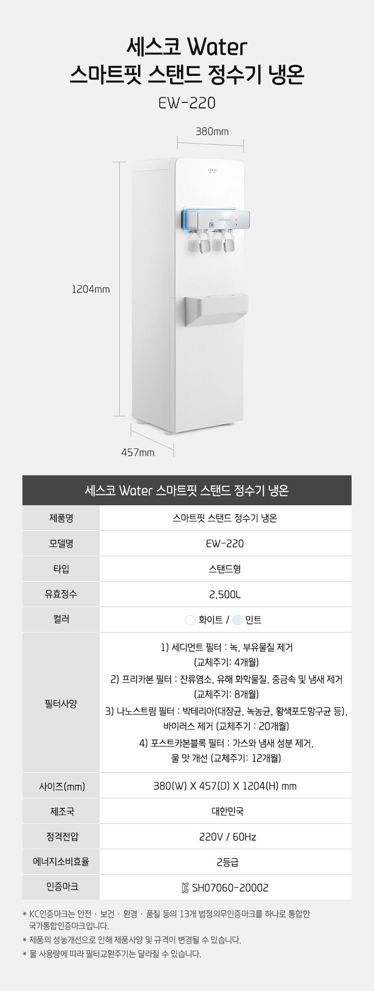 [세스코] 스마트핏 스탠드 냉온정수기