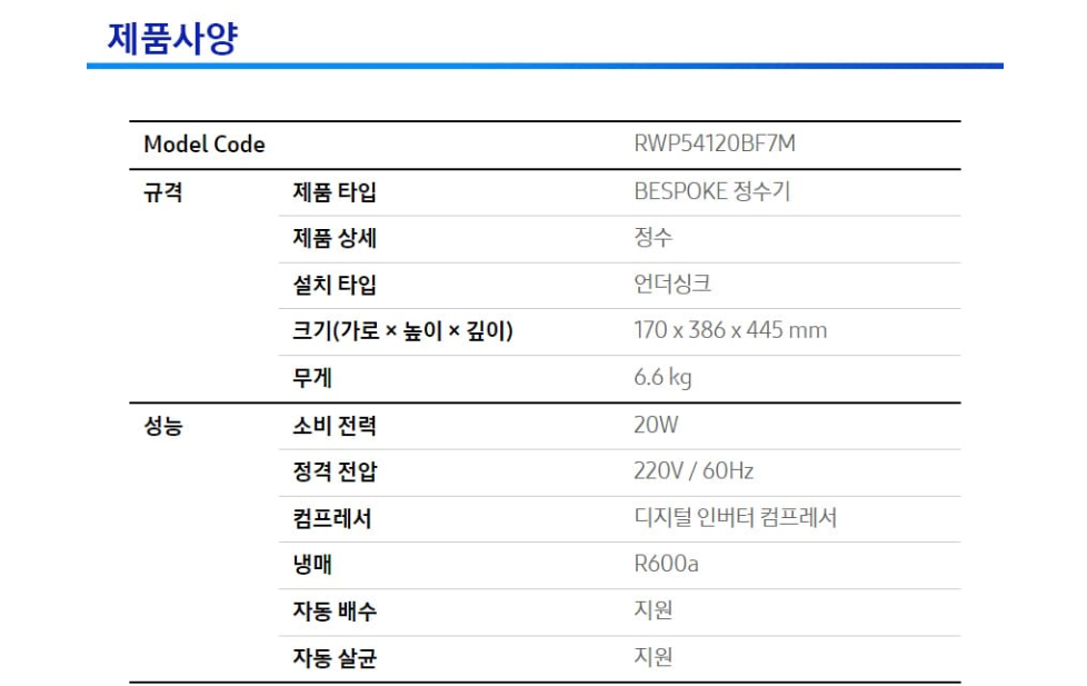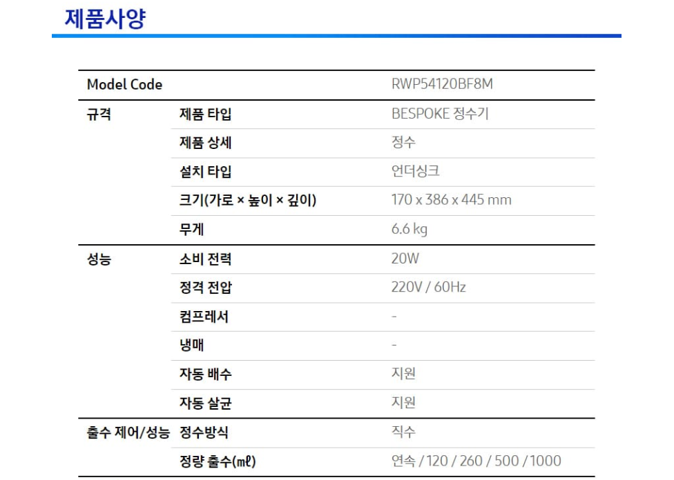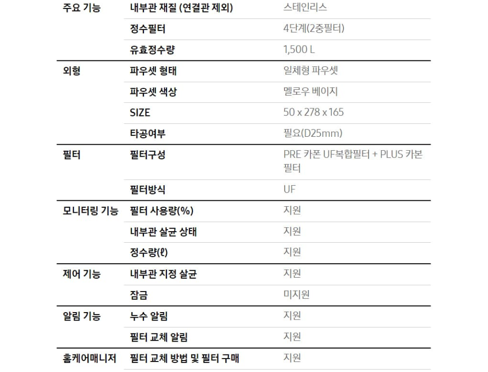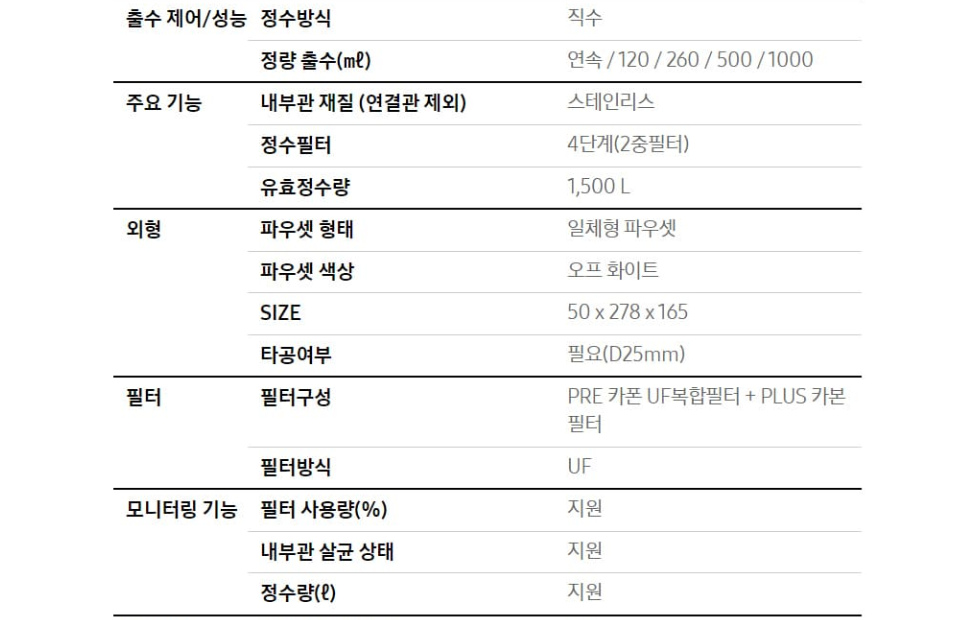 RWP54120BF6M/7M/8M LG헬로 [삼성] 비스포크 정수기 정수전용 일체형 제품분류 정수기 정수방식 직수형 기능 정수전용 AS기간 1년 최저 렌탈가 월 25,900 (렌탈가) 제휴카드 할인가 월 (렌탈가) 3년 4년 5년 자가관리 오프블랙 오프화이트 멜로우베이지 할인 제휴카드 보기 렌탈신청 장바구니