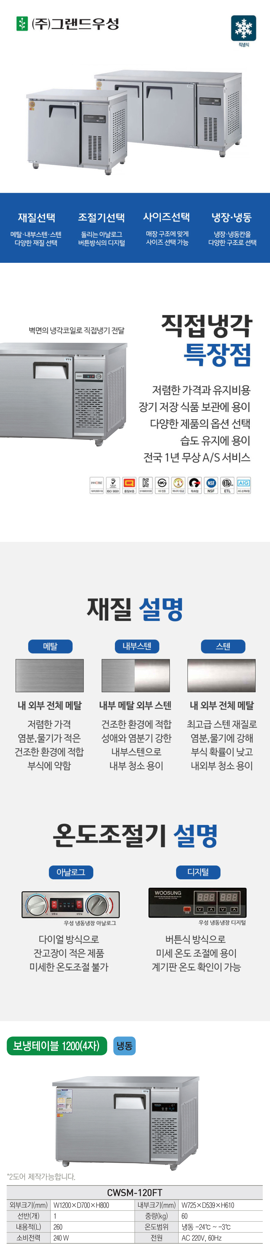 CWSM-120FT_올스텐 스마트렌탈 [그랜드우성] 직냉식 테이블 냉동고 260L 올스텐 제품분류 업소용 용량(총량) 200L이상 기능 1도어 AS기간 1년 최저 렌탈가 월 45,900 (렌탈가) 제휴카드 할인가 월 (렌탈가) 3년 4년 할인 제휴카드 보기 렌탈신청 장바구니