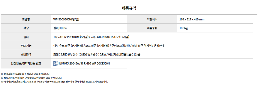 WP-30C9560N 청호나이스 [청호나이스] 냉온정수기 제품분류 정수기 정수방식 직수형 기능 냉온전용 AS기간 렌탈기간내 최저 렌탈가 월 24,900 (렌탈가) 제휴카드 할인가 월 (렌탈가) 3년 5년 자가관리 방문관리/4개월 제품색상 선택 화이트 + 0원 실버 + 0원 할인 제휴카드 보기 렌탈신청 장바구니