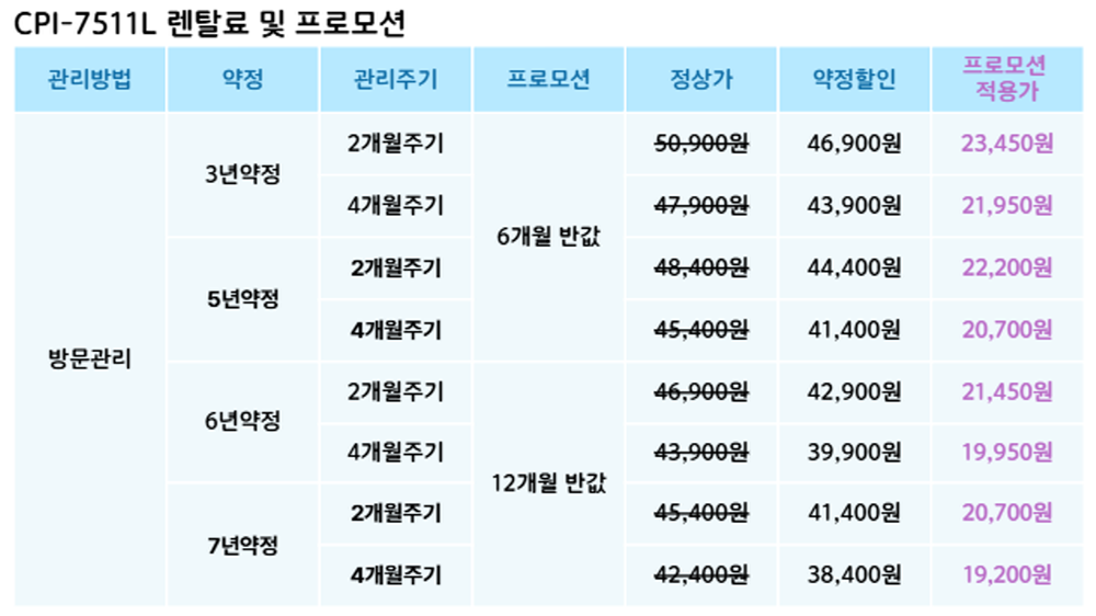 1644-7658 빠르고 간편한 렌탈 상담신청 개인정보 수집/이용 내용보기 동의 미동의 ※ 개인정보수집이용 동의 1. 개인정보의 수집 및 이용목적 : 원활한 렌탈 상담 및 주문을 위한 참조자료로 아래와 같은 항목의 개인정보를 수집하고 있습니다 2. 수집하려는 개인정보 항목 : 필수 수집항목 : 이름, 연락처 3. 개인정보의 보유 및 이용기간 : 수집된 정보는 이용자의 정보 삭제 요구 시까지 보관, 활용하며 수집 및 이용 목적이 달성된 후 해당 정보를 지체 없이 파기합니다. 단순 상담고객 3개월 후 파기 / 계약 고객 12개월 후 파기 4. 개인정보 취급 담당자 : 이름 : 박현식연락처 : 1644-7658 5. 개인정보 수집 동의거부 사항 : 이용자의 개인정보는 원활한 상담을 위해 수집하고 있으며, 동의하지 않을 경우 상담 및 주문이 제한됩니다. [닫기]