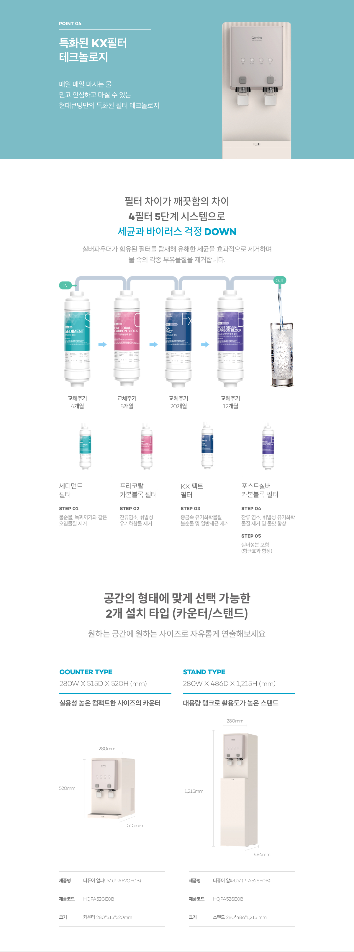 [현대큐밍] 더퓨어 알파 UV 카운터 냉온정수기