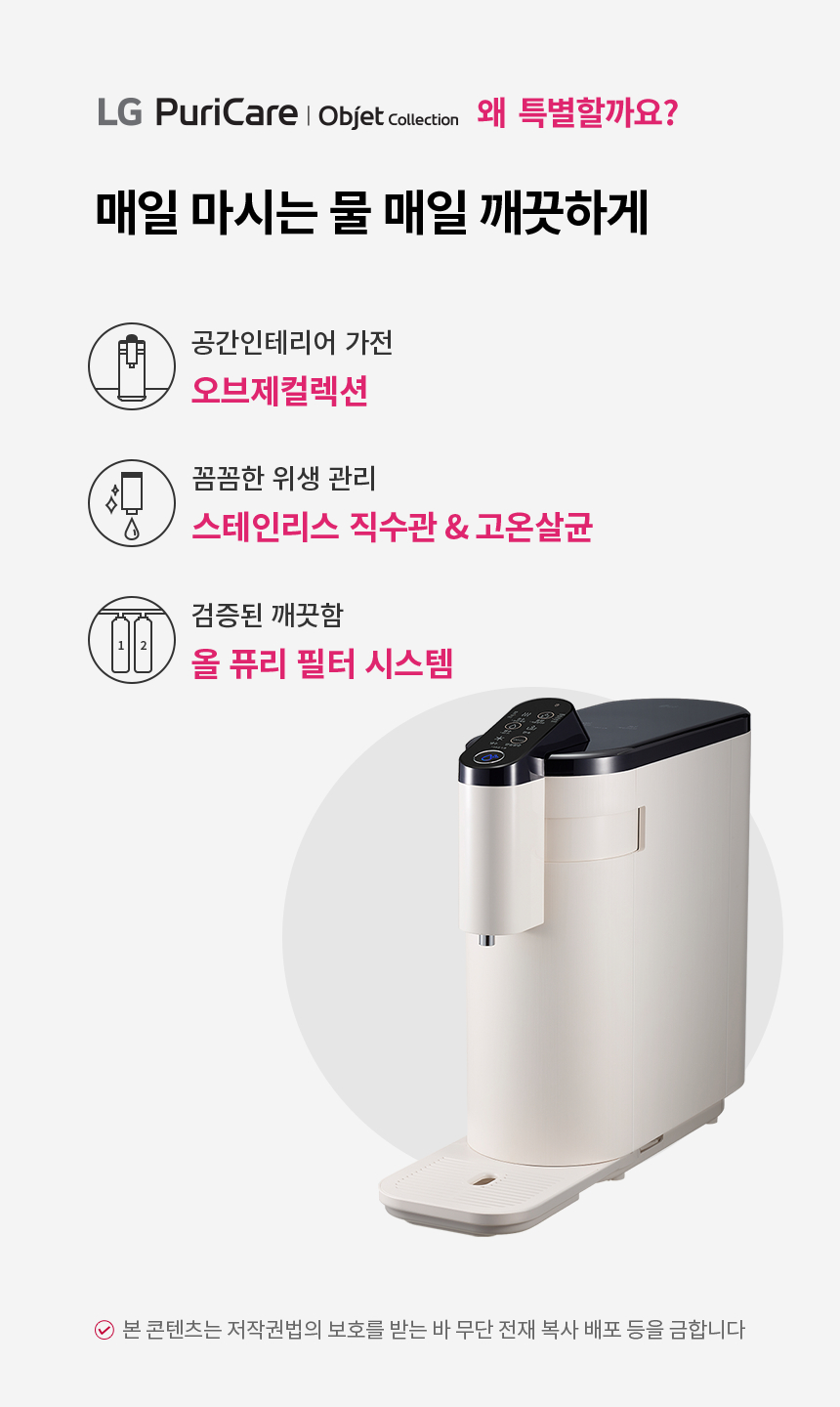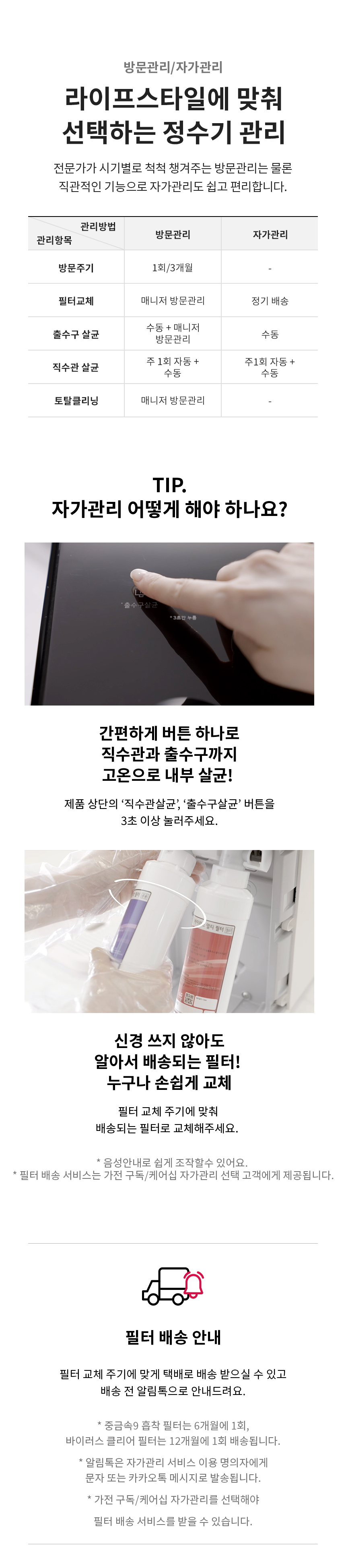 WD525ACB/GB LG전자구독 [LG] 오브제컬렉션 ALL직수 상하좌우 냉온정수기 제품분류 정수기 정수방식 직수형 기능 냉온전용 AS기간 렌탈기간내 최저 렌탈가 월 29,900 (렌탈가) 제휴카드 할인가 월 (렌탈가) 5년 6년 자가관리 방문관리/12개월 방문관리/6개월 제품색상 선택 카밍베이지 + 0원 카밍그린 + 0원 할인 제휴카드 보기 렌탈신청 장바구니