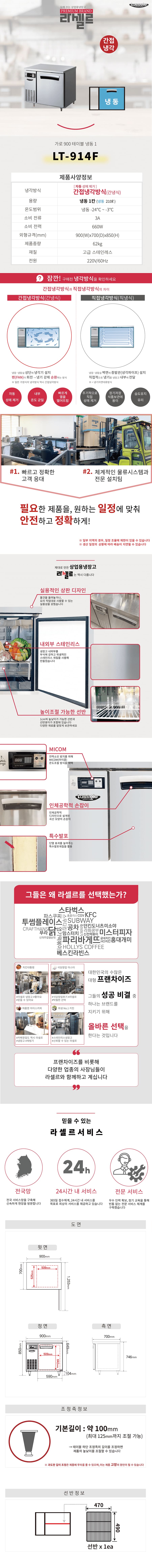 LT-914F 스마트렌탈 [라셀르] 간냉식 테이블 냉동고 210L (올스텐) 제품분류 업소용 용량(총량) 200L이상 기능 1도어 AS기간 1년 최저 렌탈가 월 68,900 (렌탈가) 제휴카드 할인가 월 (렌탈가) 3년 4년 할인 제휴카드 보기 렌탈신청 장바구니