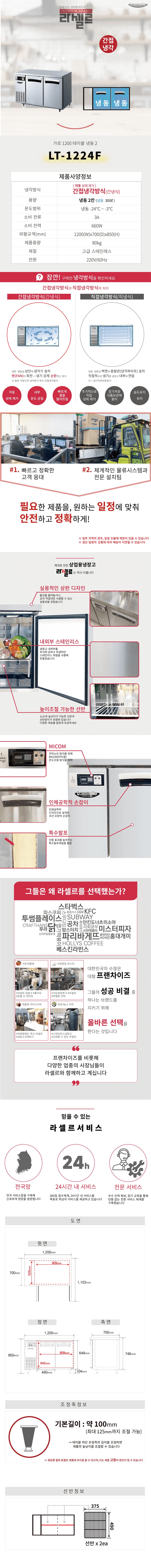 LT-1224F 스마트렌탈 [라셀르] 간냉식 테이블 냉동고 300L (올스텐) 제품분류 업소용 용량(총량) 300L이상 기능 2도어 AS기간 1년 최저 렌탈가 월 73,900 (렌탈가) 제휴카드 할인가 월 (렌탈가) 3년 4년 할인 제휴카드 보기 렌탈신청 장바구니