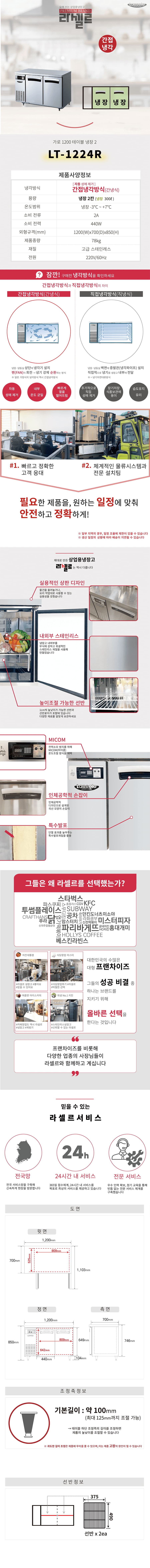 LT-1224R 스마트렌탈 [라셀르] 간냉식 테이블 냉장고 300L (올스텐) 제품분류 업소용 용량(총량) 300L이상 기능 2도어 AS기간 1년 최저 렌탈가 월 65,500 (렌탈가) 제휴카드 할인가 월 (렌탈가) 3년 4년 할인 제휴카드 보기 렌탈신청 장바구니