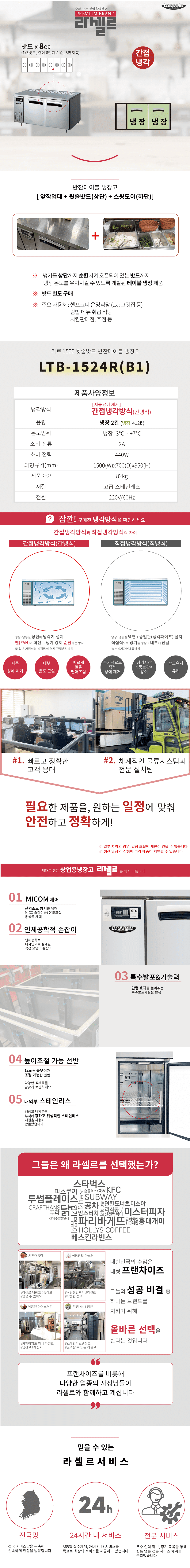 LTB-1524R(B1) 스마트렌탈 [라셀르] 간냉식 뒷줄 반찬 테이블 냉장고 412L (올스텐) 제품분류 업소용 용량(총량) 400L이상 기능 2도어 AS기간 1년 최저 렌탈가 월 72,500 (렌탈가) 제휴카드 할인가 월 (렌탈가) 3년 4년 할인 제휴카드 보기 렌탈신청 장바구니