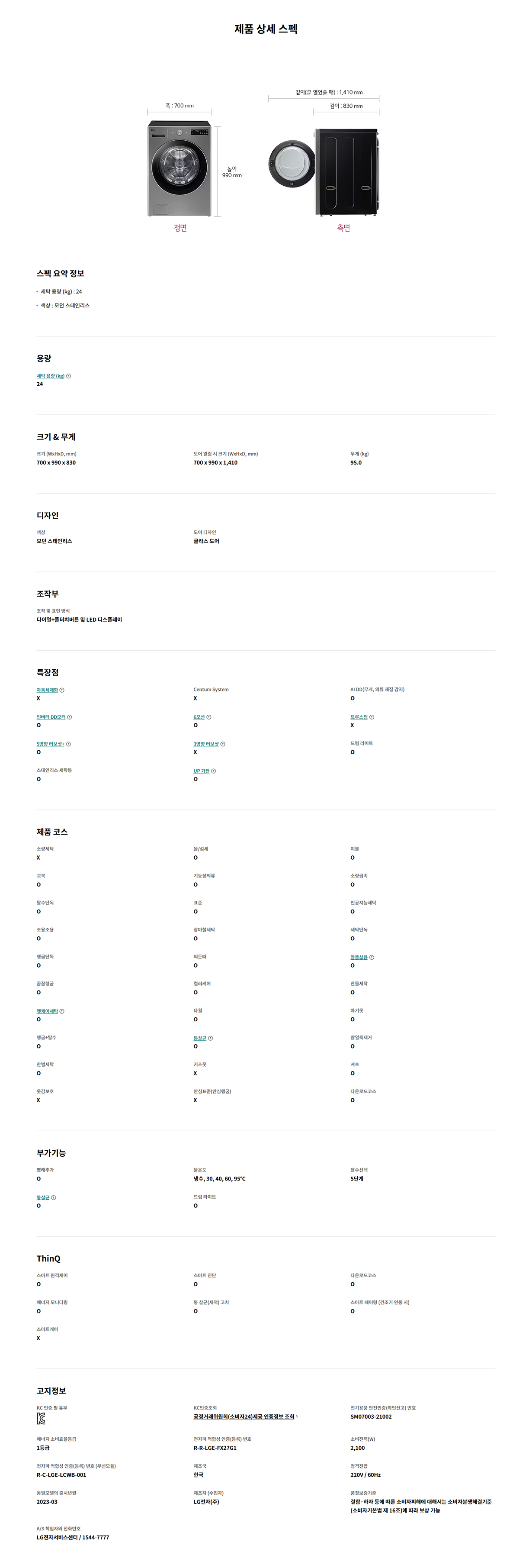 [LG] 트롬 오브제컬렉션 세탁기 24kg 모던 스테인리스