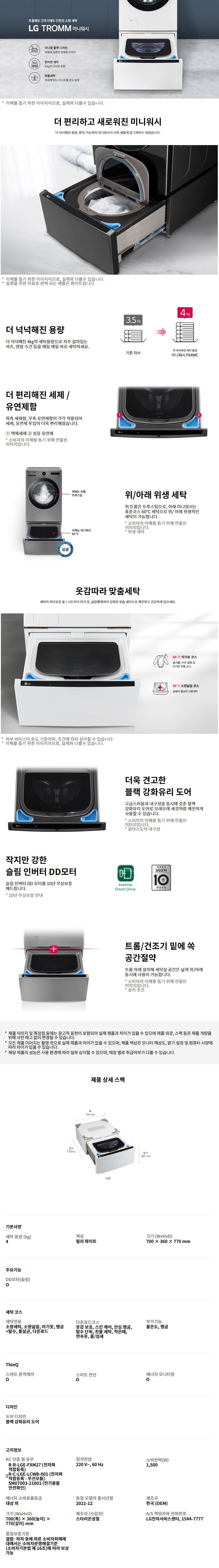 FX4WC 스마트렌탈 [LG] 트롬 미니워시 세탁기 4kg 화이트 제품분류 세탁기 용량(총량) 09KG이하 AS기간 1년 최저 렌탈가 월 19,900 (렌탈가) 제휴카드 할인가 월 (렌탈가) 3년 4년 5년 할인 제휴카드 보기 렌탈신청 장바구니