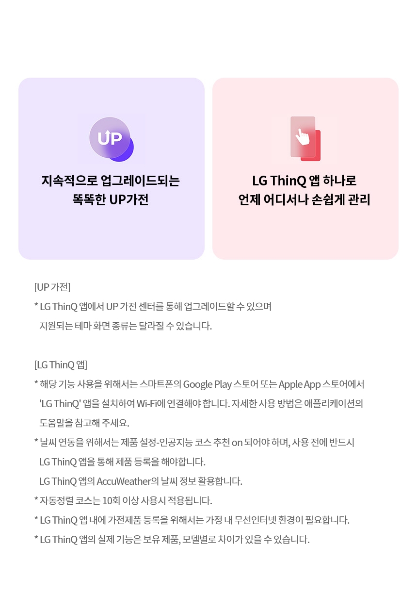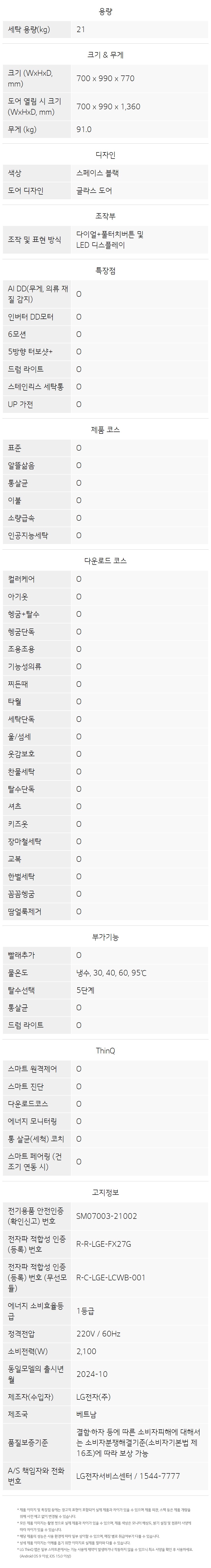 FG21KN LG전자구독 [LG] 트롬 오브제컬렉션 세탁기 21kg 스페이스블랙 제품분류 세탁기 용량(총량) 21KG AS기간 렌탈기간내 최저 렌탈가 월 33,900 (렌탈가) 제휴카드 할인가 월 (렌탈가) 3년 4년 5년 6년 방문관리/6개월 방문관리/12개월 방문관리/24개월 할인 제휴카드 보기 렌탈신청 장바구니