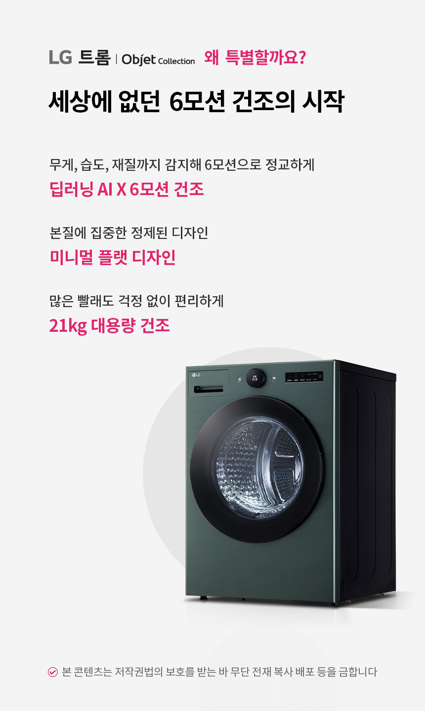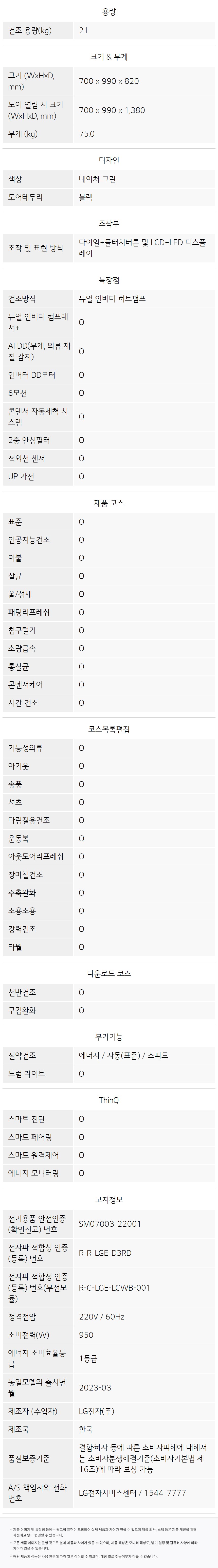 RD21GN LG전자구독 [LG] 트롬 오브제컬렉션 건조기 21kg 네이처그린 제품분류 건조기 용량(총량) 21KG AS기간 렌탈기간내 최저 렌탈가 월 39,900 (렌탈가) 제휴카드 할인가 월 (렌탈가) 3년 4년 5년 6년 방문관리/6개월 방문관리/12개월 할인 제휴카드 보기 렌탈신청 장바구니