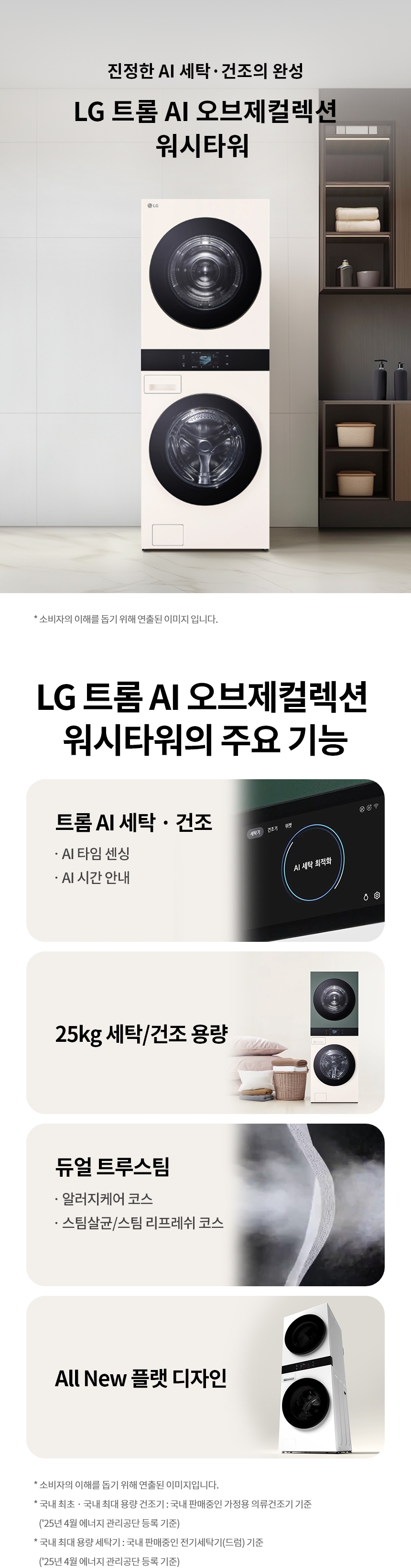 WA2525EEZF LG전자구독 [LG] 트롬 AI 오브제컬렉션 워시타워 세탁기 25kg + 건조기 25kg 네이처베이지 제품분류 건조기 세탁기 용량(총량) 25KG,25KG AS기간 렌탈기간내 최저 렌탈가 월 94,900 (렌탈가) 제휴카드 할인가 월 (렌탈가) 3년 4년 5년 6년 방문관리/6개월 방문관리/12개월 할인 제휴카드 보기 렌탈신청 장바구니