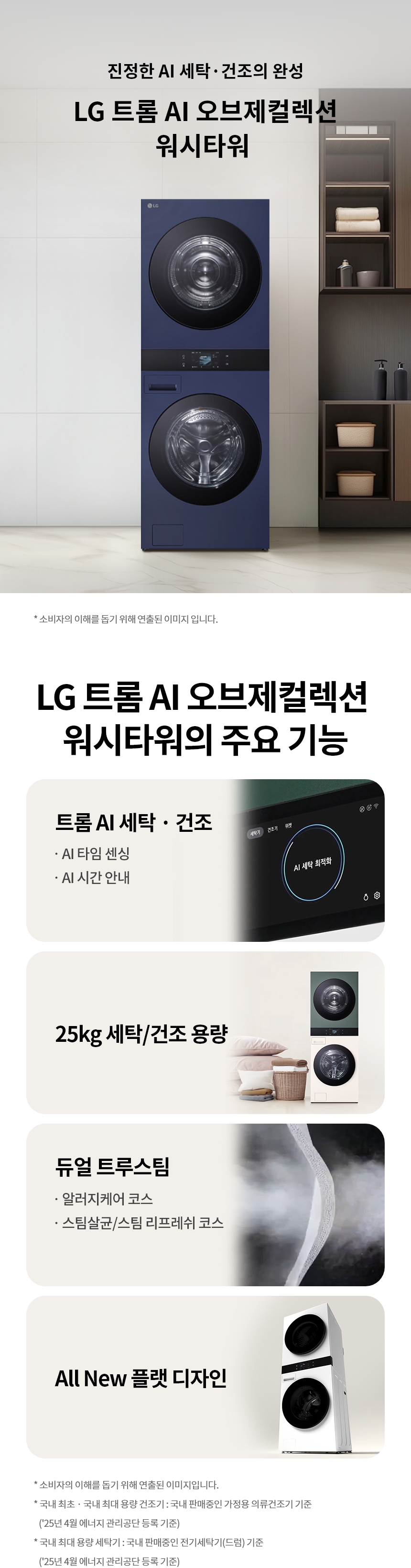 WA2525YYZF LG전자구독 [LG] 트롬 AI 오브제컬렉션 워시타워 세탁기 25kg + 건조기 25kg 네이처네이비 제품분류 건조기 세탁기 용량(총량) 25KG,25KG AS기간 렌탈기간내 최저 렌탈가 월 94,900 (렌탈가) 제휴카드 할인가 월 (렌탈가) 3년 4년 5년 6년 방문관리/6개월 방문관리/12개월 할인 제휴카드 보기 렌탈신청 장바구니