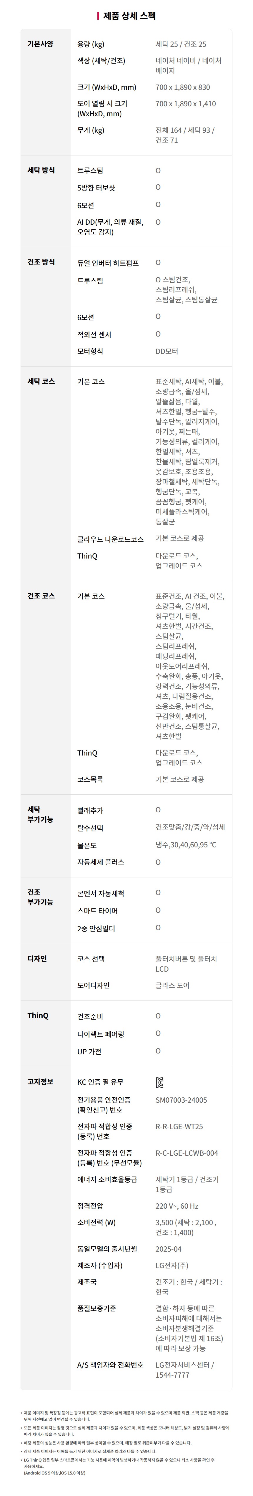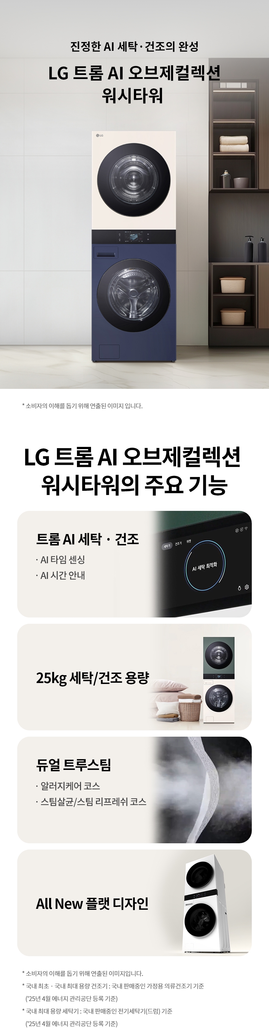 WA2525YEZF LG전자구독 [LG] 트롬 AI 오브제컬렉션 워시타워 세탁기 25kg + 건조기 25kg 네이처베이지/네이처네이비 제품분류 건조기 세탁기 용량(총량) 25KG,25KG AS기간 렌탈기간내 최저 렌탈가 월 94,900 (렌탈가) 제휴카드 할인가 월 (렌탈가) 3년 4년 5년 6년 방문관리/6개월 방문관리/12개월 할인 제휴카드 보기 렌탈신청 장바구니