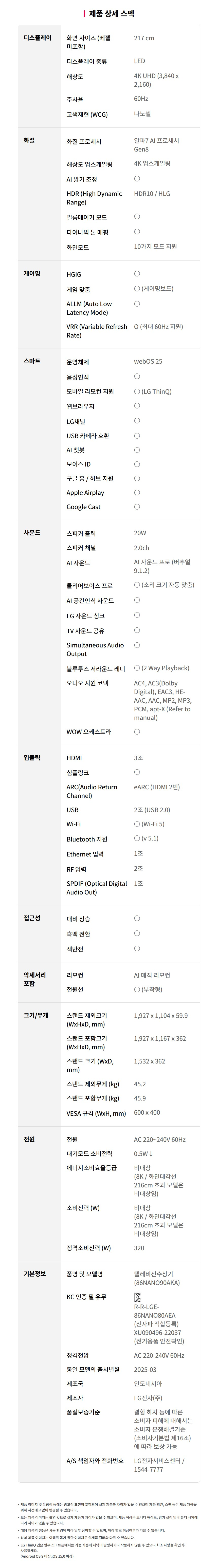 86NANO90AKA LG전자구독 [LG] 나노셀 TV 86인치 제품분류 TV 제품규격 80인치이상 AS기간 렌탈기간내 최저 렌탈가 월 66,800 (렌탈가) 제휴카드 할인가 월 (렌탈가) 3년 4년 5년 6년 할인 제휴카드 보기 렌탈신청 장바구니
