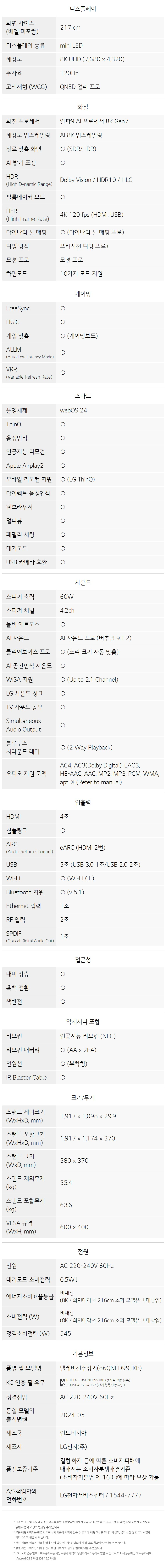 86QNED99TKB LG전자구독 [LG] QNED evo TV 86인치 제품분류 TV 제품규격 80인치이상 AS기간 렌탈기간내 최저 렌탈가 월 200,800 (렌탈가) 제휴카드 할인가 월 (렌탈가) 3년 4년 5년 6년 할인 제휴카드 보기 렌탈신청 장바구니