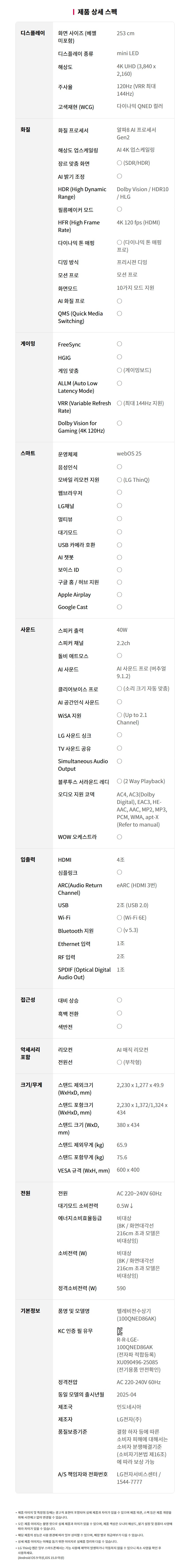 100QNED86A LG전자구독 [LG] QNED evo TV 100인치 제품분류 TV 제품규격 80인치이상 AS기간 렌탈기간내 최저 렌탈가 월 151,800 (렌탈가) 제휴카드 할인가 월 (렌탈가) 3년 4년 5년 6년 할인 제휴카드 보기 렌탈신청 장바구니