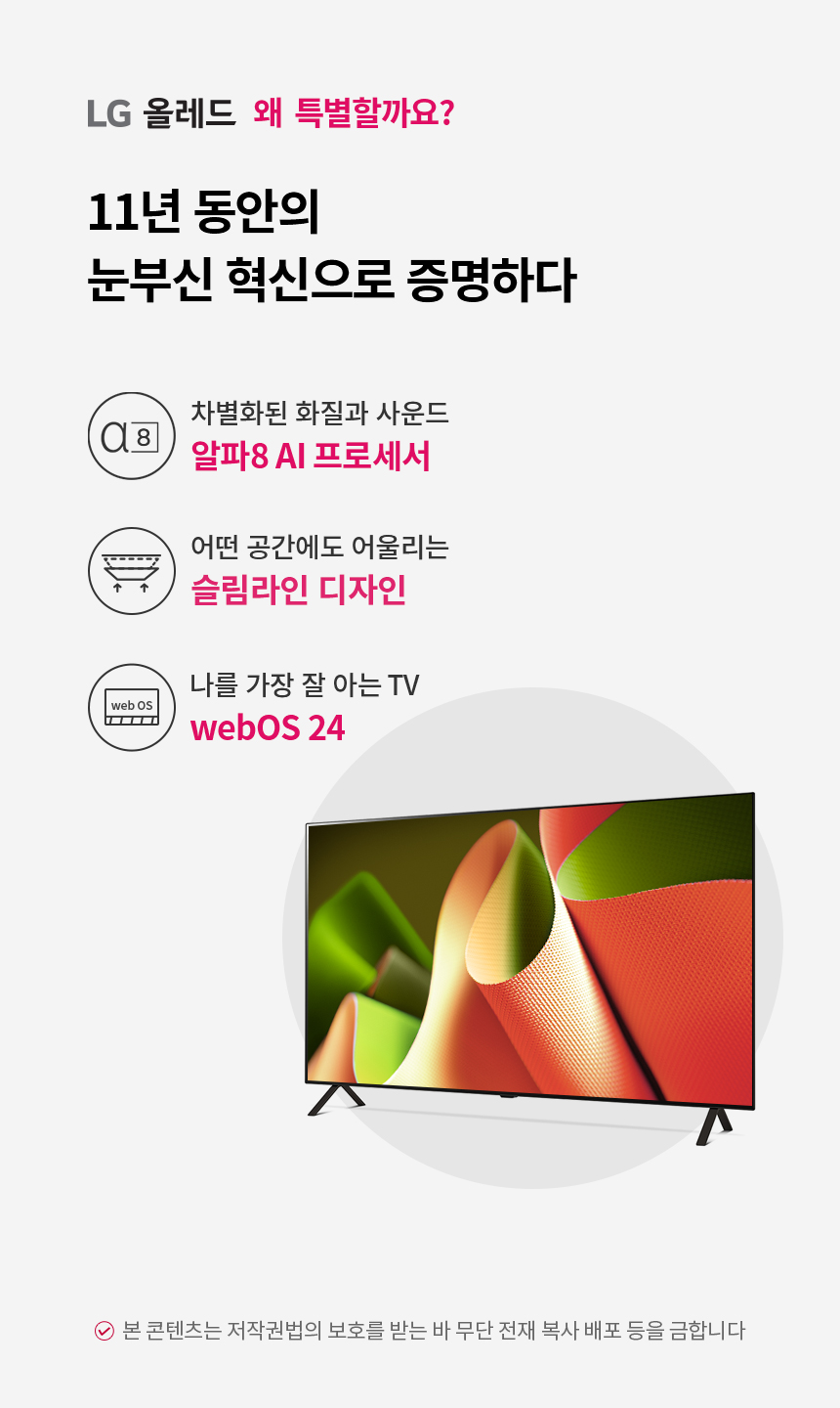 OLED55B4KNA LG전자구독 [LG] 올레드 TV 55인치 제품분류 TV 제품규격 50~59인치 AS기간 렌탈기간내 최저 렌탈가 월 38,300 (렌탈가) 제휴카드 할인가 월 (렌탈가) 3년 4년 5년 6년 할인 제휴카드 보기 렌탈신청 장바구니