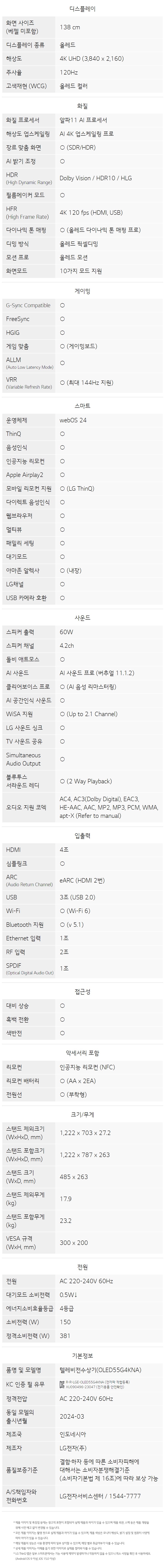 OLED55G4KN LG전자구독 [LG] 올레드 evo TV 55인치 제품분류 TV 제품규격 50~59인치 AS기간 렌탈기간내 최저 렌탈가 월 60,300 (렌탈가) 제휴카드 할인가 월 (렌탈가) 3년 4년 5년 6년 할인 제휴카드 보기 렌탈신청 장바구니