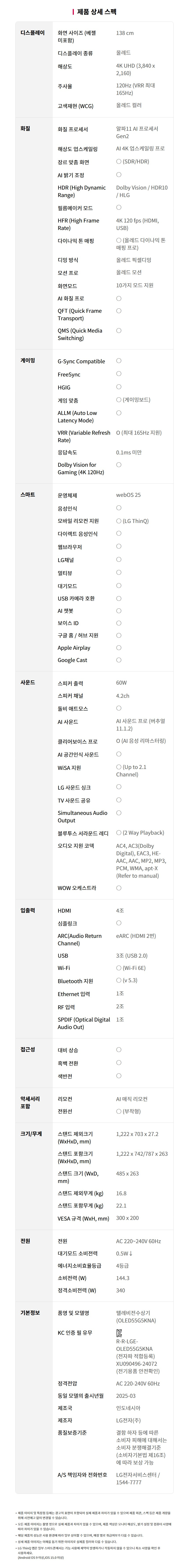 OLED55G5KNA LG전자구독 [LG] 올레드 evo TV 55인치 제품분류 TV 제품규격 50~59인치 AS기간 렌탈기간내 최저 렌탈가 월 59,200 (렌탈가) 제휴카드 할인가 월 (렌탈가) 3년 4년 5년 6년 할인 제휴카드 보기 렌탈신청 장바구니