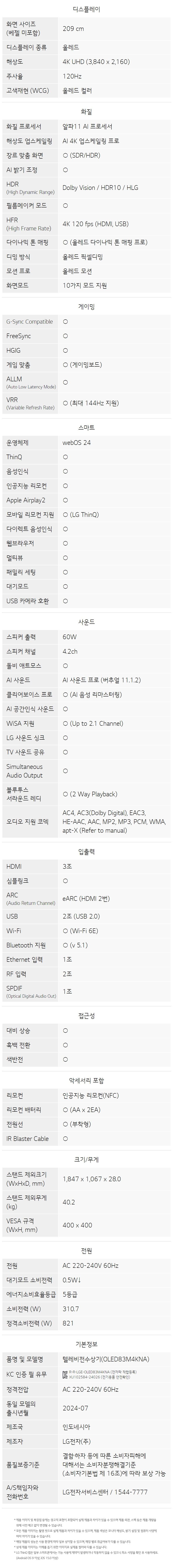 OLED83M4KNA LG전자구독 [LG] 올레드 evo TV 83인치 제품분류 TV 제품규격 80인치이상 AS기간 렌탈기간내 최저 렌탈가 월 230,100 (렌탈가) 제휴카드 할인가 월 (렌탈가) 3년 4년 5년 6년 할인 제휴카드 보기 렌탈신청 장바구니