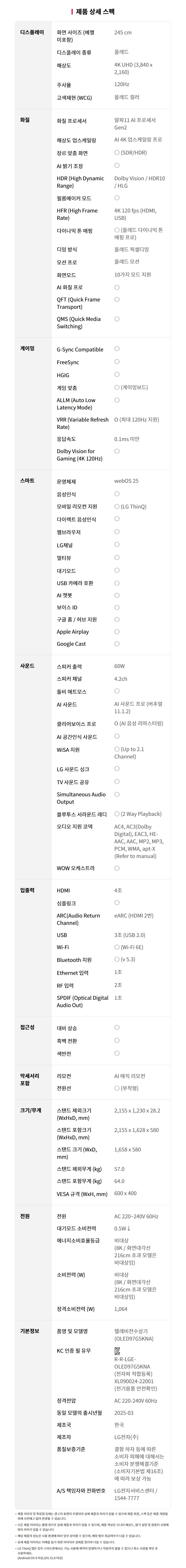 OLED97G5KNA LG전자구독 [LG] 올레드 evo TV 97인치 제품분류 TV 제품규격 80인치이상 AS기간 렌탈기간내 최저 렌탈가 월 679,800 (렌탈가) 제휴카드 할인가 월 (렌탈가) 3년 4년 5년 6년 할인 제휴카드 보기 렌탈신청 장바구니