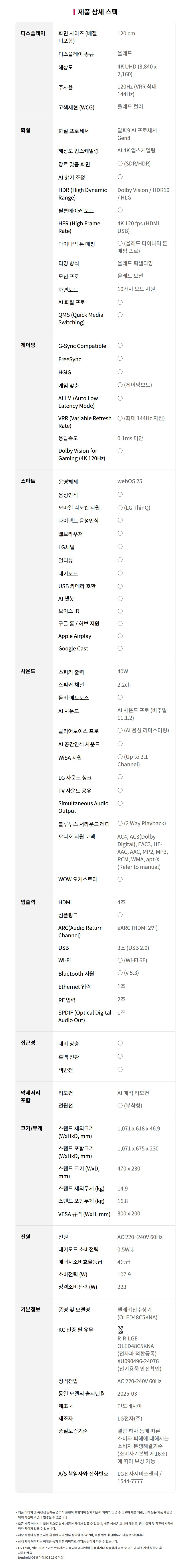 OLED48C5KNA LG전자구독 [LG] 올레드 evo TV 48인치 제품분류 TV 제품규격 40~49인치 AS기간 렌탈기간내 최저 렌탈가 월 36,100 (렌탈가) 제휴카드 할인가 월 (렌탈가) 3년 4년 5년 6년 할인 제휴카드 보기 렌탈신청 장바구니