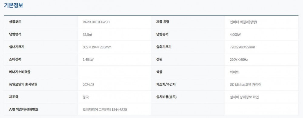 [캐리어] 인버터 벽걸이 에어컨 10평형 화이트