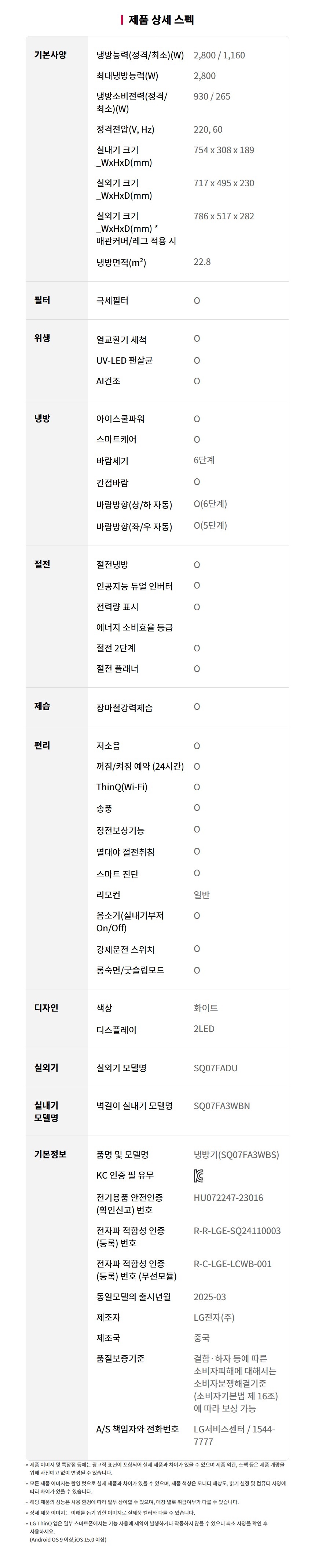 SQ07FA3WBS LG전자구독 [LG] 휘센 벽걸이 에어컨 7평형 화이트 제품분류 에어컨 AS기간 렌탈기간내 최저 렌탈가 월 20,900 (렌탈가) 제휴카드 할인가 월 (렌탈가) 3년 4년 5년 6년 라이트플러스 서비스 프리미엄 서비스 할인 제휴카드 보기 렌탈신청 장바구니