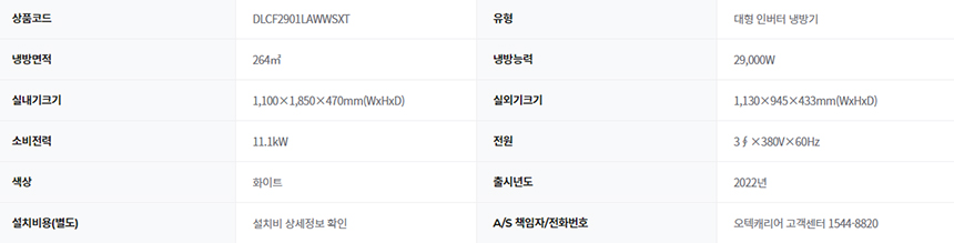 DLCF2901LAWWSXT 캐리어본사 [캐리어] 대형 인버터 스탠드 에어컨 80평형 화이트 제품분류 에어컨 AS기간 2년 최저 렌탈가 월 166,900 (렌탈가) 제휴카드 할인가 월 (렌탈가) 3년 4년 5년 할인 제휴카드 보기 렌탈신청 장바구니